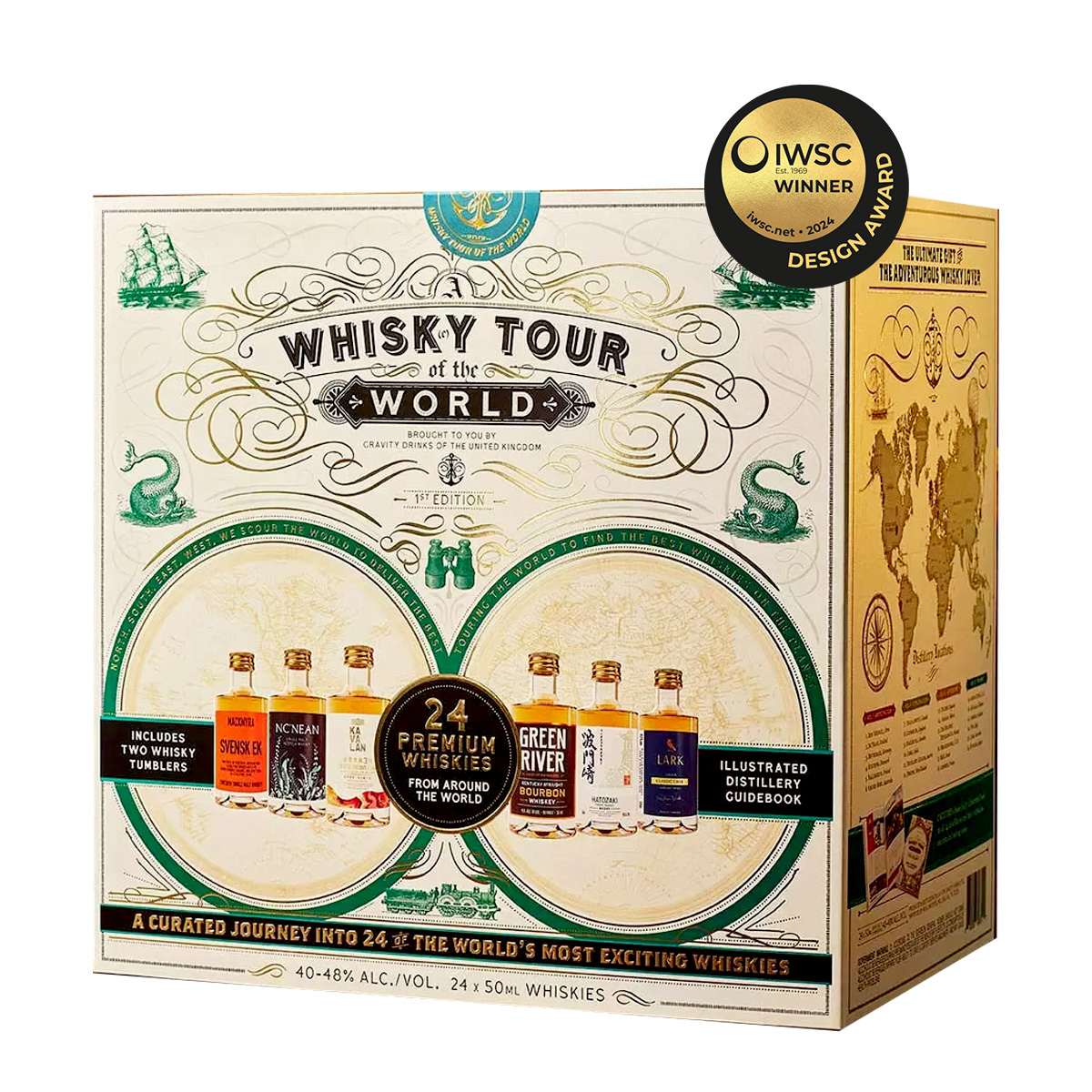 Descripción Whisky Tour of the World es un exclusivo pack de regalo que reúne 24 expresiones de whisky ultra premium de 24 países , cuidadosamente seleccionadas de algunas de las destilerías más reconocidas y premiadas del mundo . El regalo definitivo para amantes y conocedores del whisky que buscan una experiencia internacional única. Embárcate en un viaje sensorial por el mundo del whisky con una colección excepcional de 24 whiskies premium , cada uno con carácter, origen y perfil de sabor únicos. ¿Qué incluye el Whisky Tour of the World? Este pack premium se presenta en una elegante estantería de madera hecha a mano y grabada, que alberga 5 libros encuadernados en lino con detalles laminados en oro, combinando diseño, cultura y exclusividad. El set incluye: 24 botellas de whisky ultra premium de 50 ml (1,2 litros en total), entre ellas el galardonado Black Whiskey, orgullo peruano. 2 vasos de whisky 1 libro ilustrado con información detallada de las 24 destilerías, historia, proceso de elaboración y notas de cata La colección reúne whiskies provenientes de Escocia, Japón, Taiwán, India, Irlanda, Perú, Alemania, Dinamarca, Australia, Canadá, Inglaterra, Suecia, Austria, Nueva Zelanda, México, Finlandia, Estados Unidos, Francia e Italia, ofreciendo una visión global de los mejores estilos y tradiciones del whisky. Graduación alcohólica promedio: entre 46 % y 54 % vol.